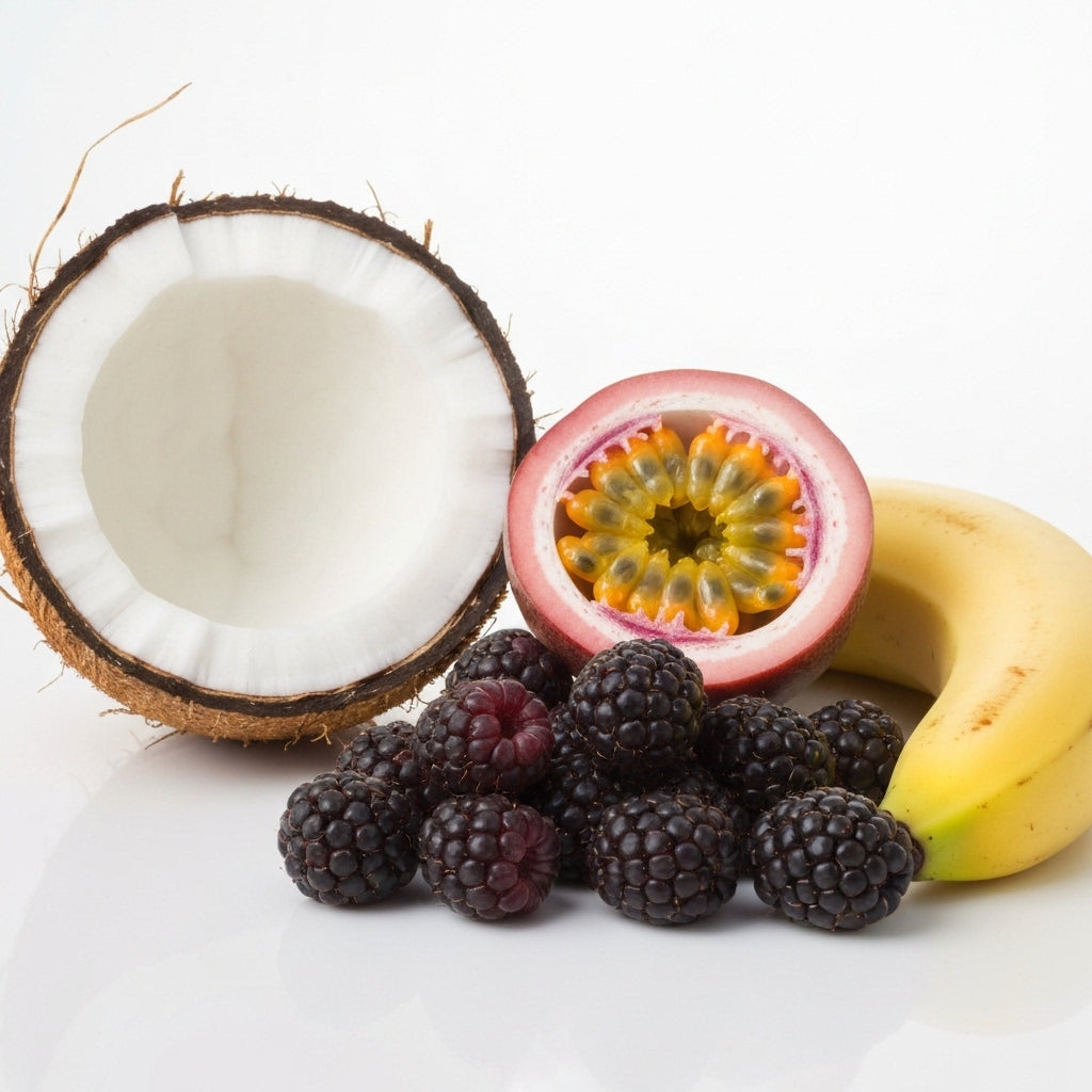 Tropical coconut shines in the opening, complemented by hints of passionfruit, black raspberry, and banana beneath. This blend enhances its character as it matures over time.